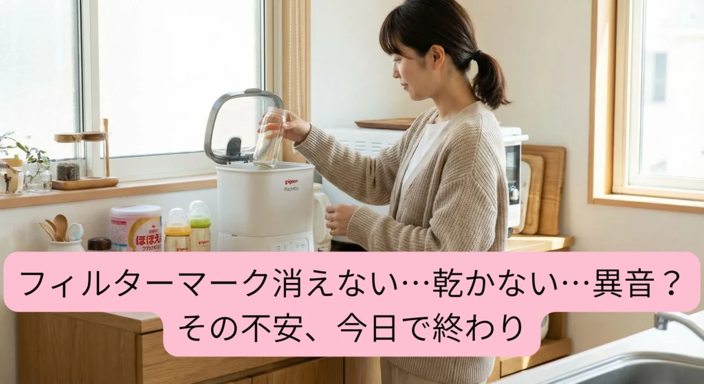 ピジョンポチットのフィルターマークが消えない乾かない異音の原因と直し方まとめ