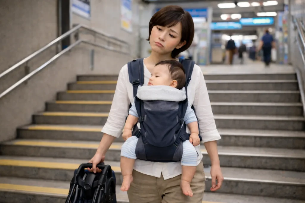 狭い店内、エレベーター、改札前。ここでスッと曲がれると、親のメンタルが守られます。