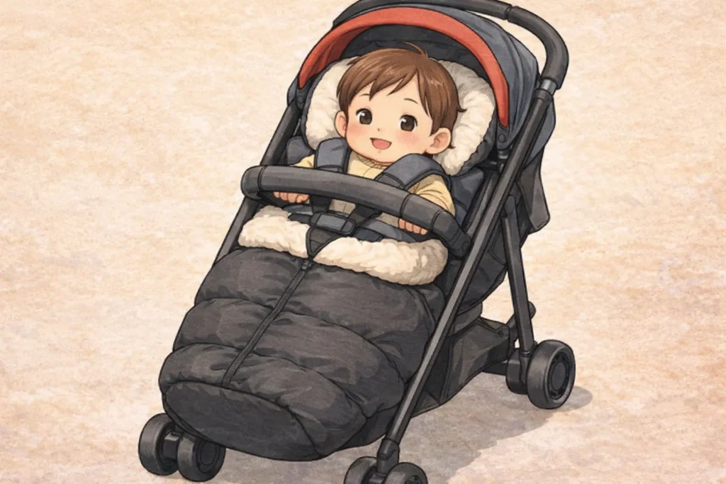 注意:フットマフを使っても、ハーネス(肩・腰・股の5点式)は必ず装着してください。カバーは転落防止具ではありません。対応年齢・装着方法は各製品とベビーカーの公式情報を必ず確認し、迷う場合は小児科や販売員など専門家に相談してください。