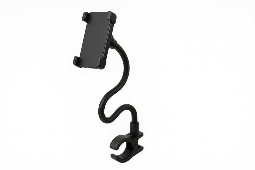 100均でスマホホルダーを探すと、まず目につきやすいのがダイソーのフレキシブルアーム型や車載用ホルダー、自転車用のバンド型ホルダーです。
