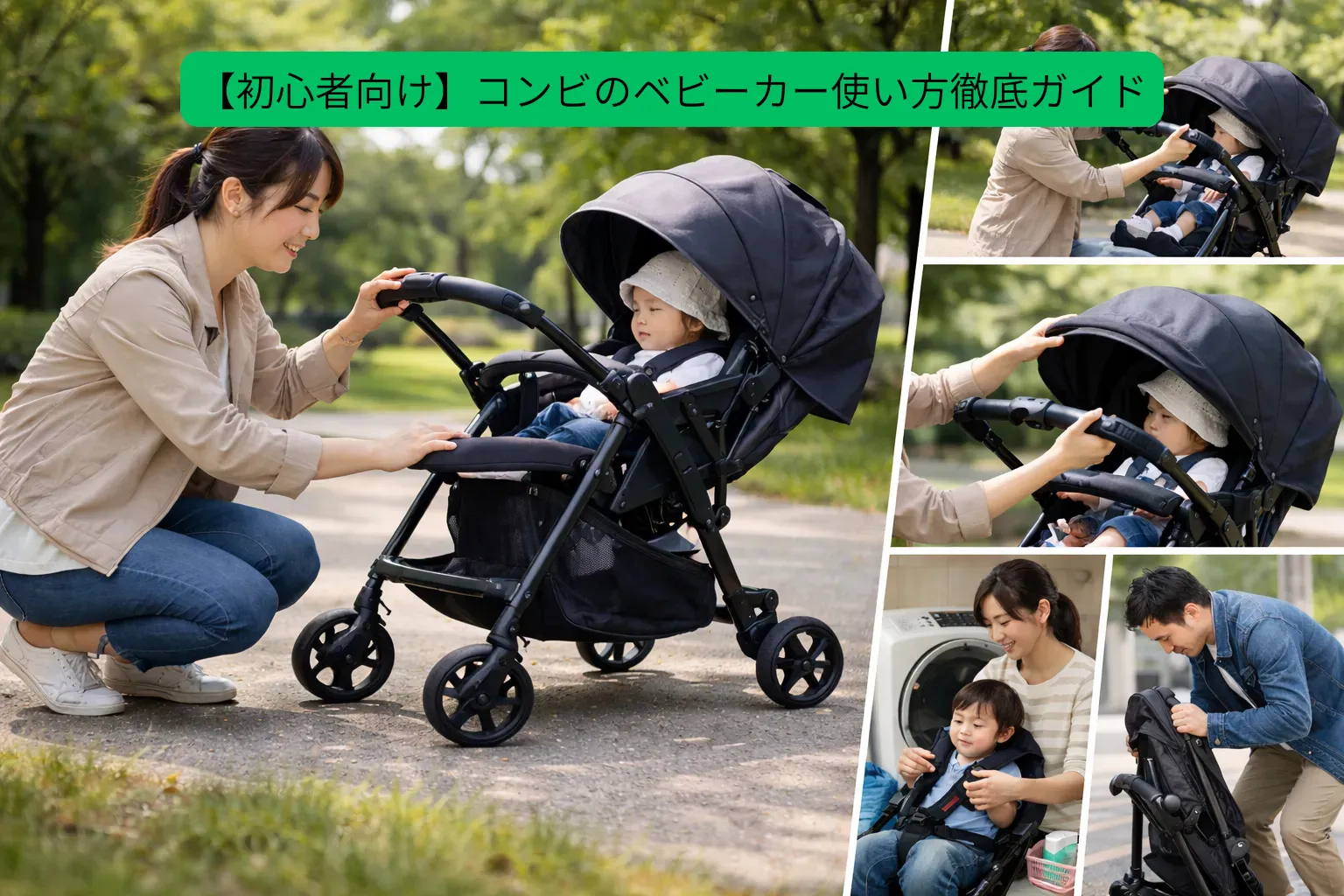 この記事はコンビベビーカー使い方まとめとして、今つまずきやすい操作から順番に整理して、迷ったらここに戻れば「次にどこを見れば解決するか」が一瞬で分かる総合ガイドにしています。
