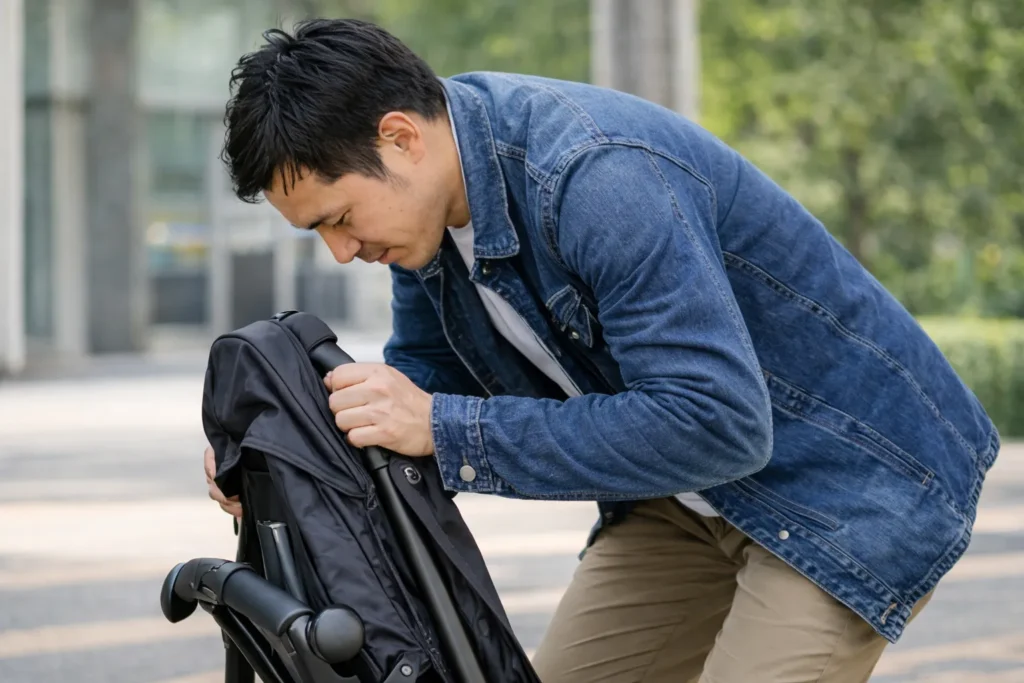 対面のまま畳める機種でも、基本は背面に戻してからがスムーズです。