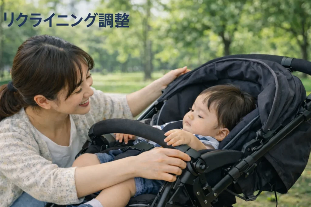 コンビのベビーカーのリクライニング方法